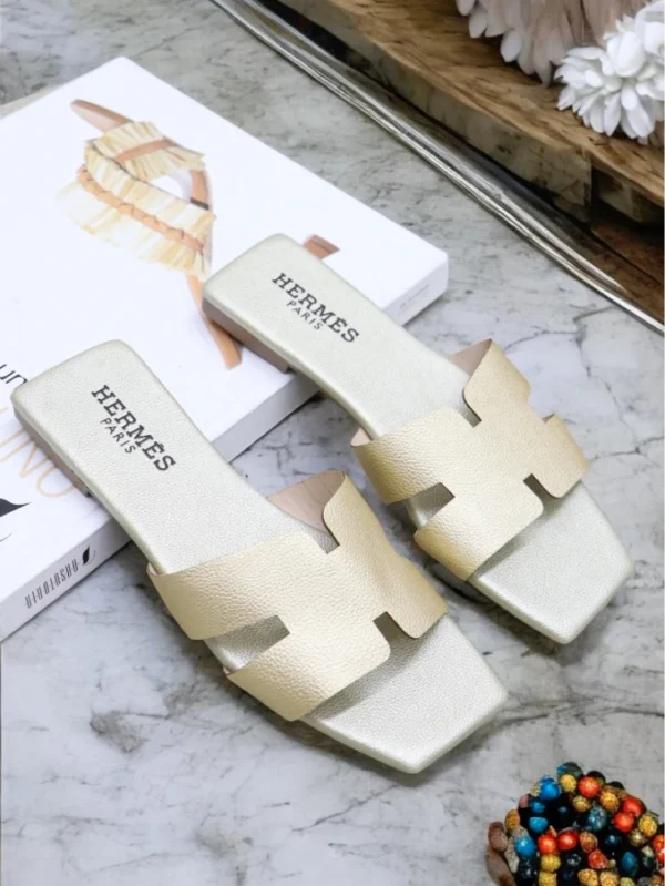 Confeccionada en materiales de alta calidad, su silueta minimalista y la icónica tira en forma de «H» ofrecen una estética pulida que combina sin esfuerzo con cualquier look —desde un vestido fluido hasta tu denim favorito. Su suela plana y diseño ergonómico garantizan comodidad durante todo el día, sin sacrificar ni un gramo de estilo.